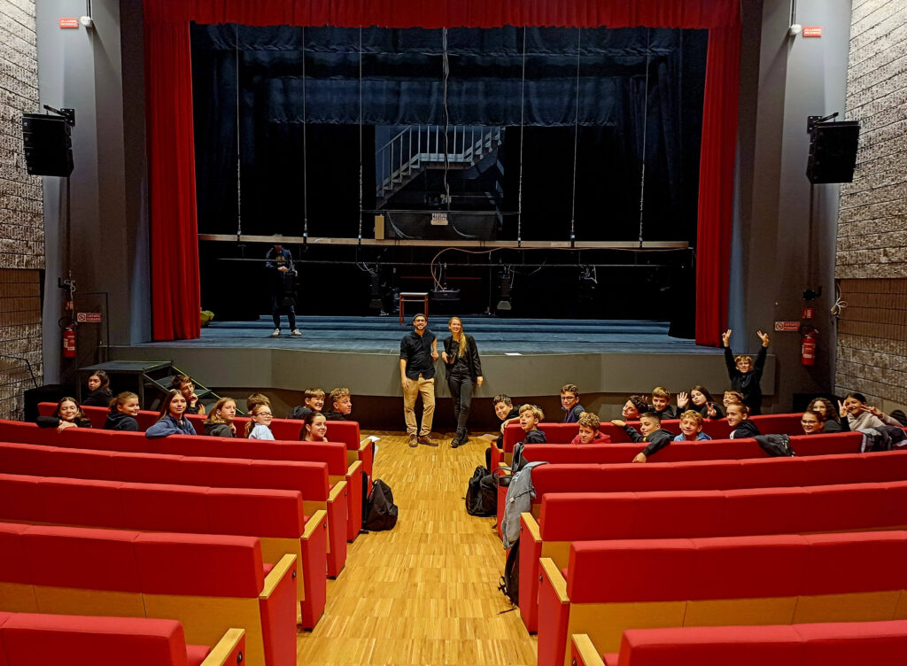 Im Rahmen des Erasmus+-Projekts begaben sich Anna Mensonides und Vincent Simon vom Paillette Theater Ende September auf eine inspirierende Reise nach Codroipo, Italien. Gemeinsam mit engagierten Schülerinnen und Schülern erlebten sie, wie Theaterpädagogik, Sprachen und Kreativität zu einem lebendigen Lernprozess verschmelzen können. Das Ziel: mehrsprachiges Lernen, interkultureller Austausch und die Stärkung von Selbstvertrauen durch künstlerischen Ausdruck.